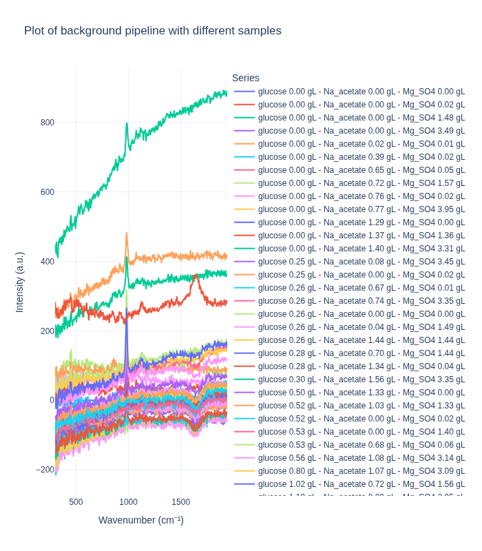 This notebook demonstrates the development of Partial Least Squares (PLS) regression models for predicting concentrations of glucose, Na_acetate, and Mg_SO4 from Raman spectra. The following summarizes key findings and decisions: