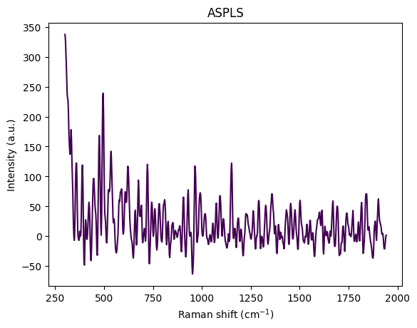 Baseline correction using Adaptive Smoothing Parameter Least Squares (ASPLS) to remove fluorescence background